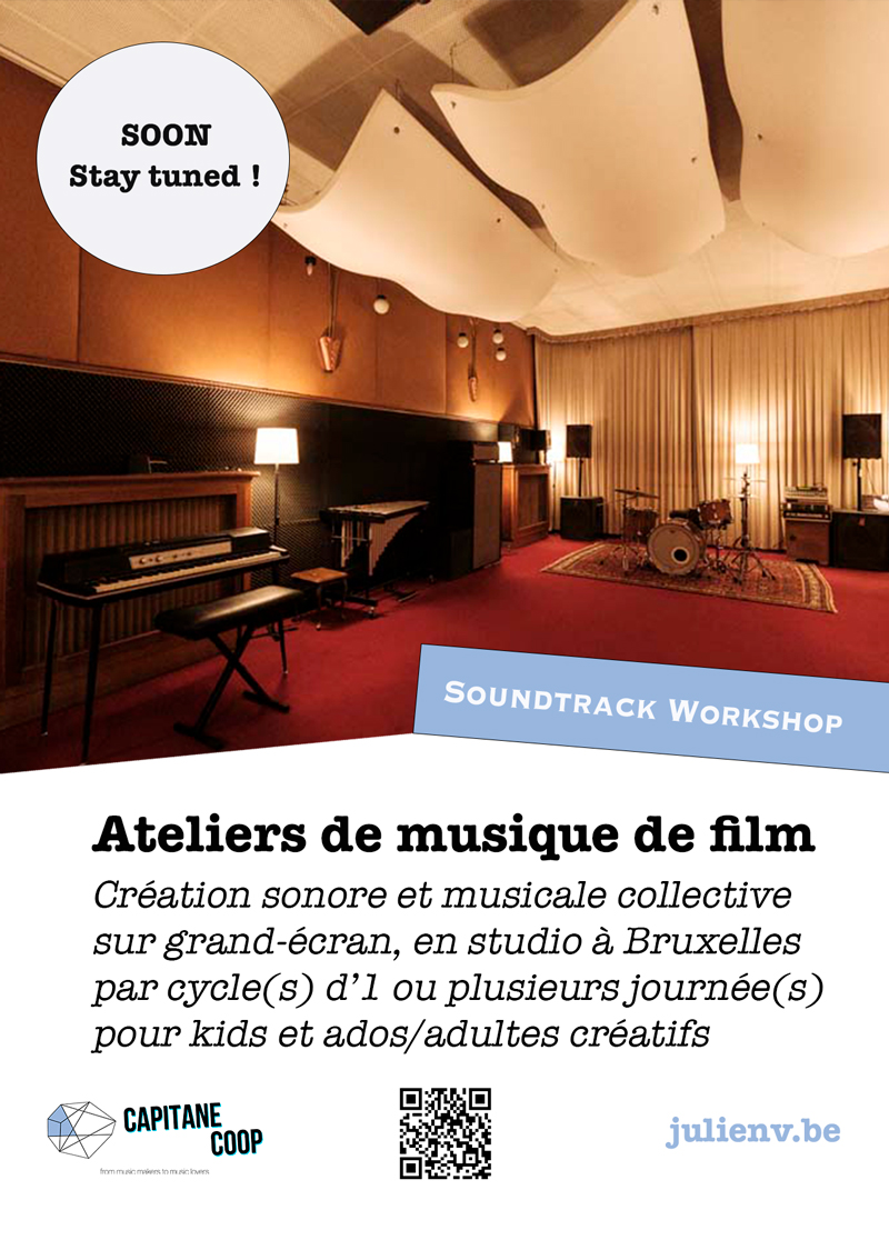Plonge dans l’univers du cinéma et de la musique en studio ! Sur grand écran, choisis un extrait de film et crée en groupe une bande-son originale avec voix, instruments, idées et émotions.